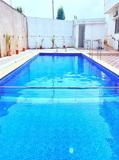 Take a refreshing dip in our crystal-clear swimming pool — the perfect place to relax and unwind during your stay.